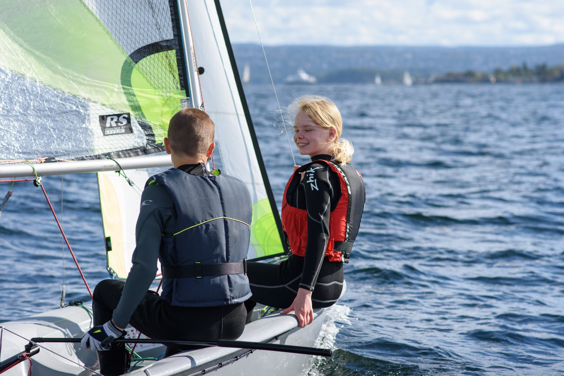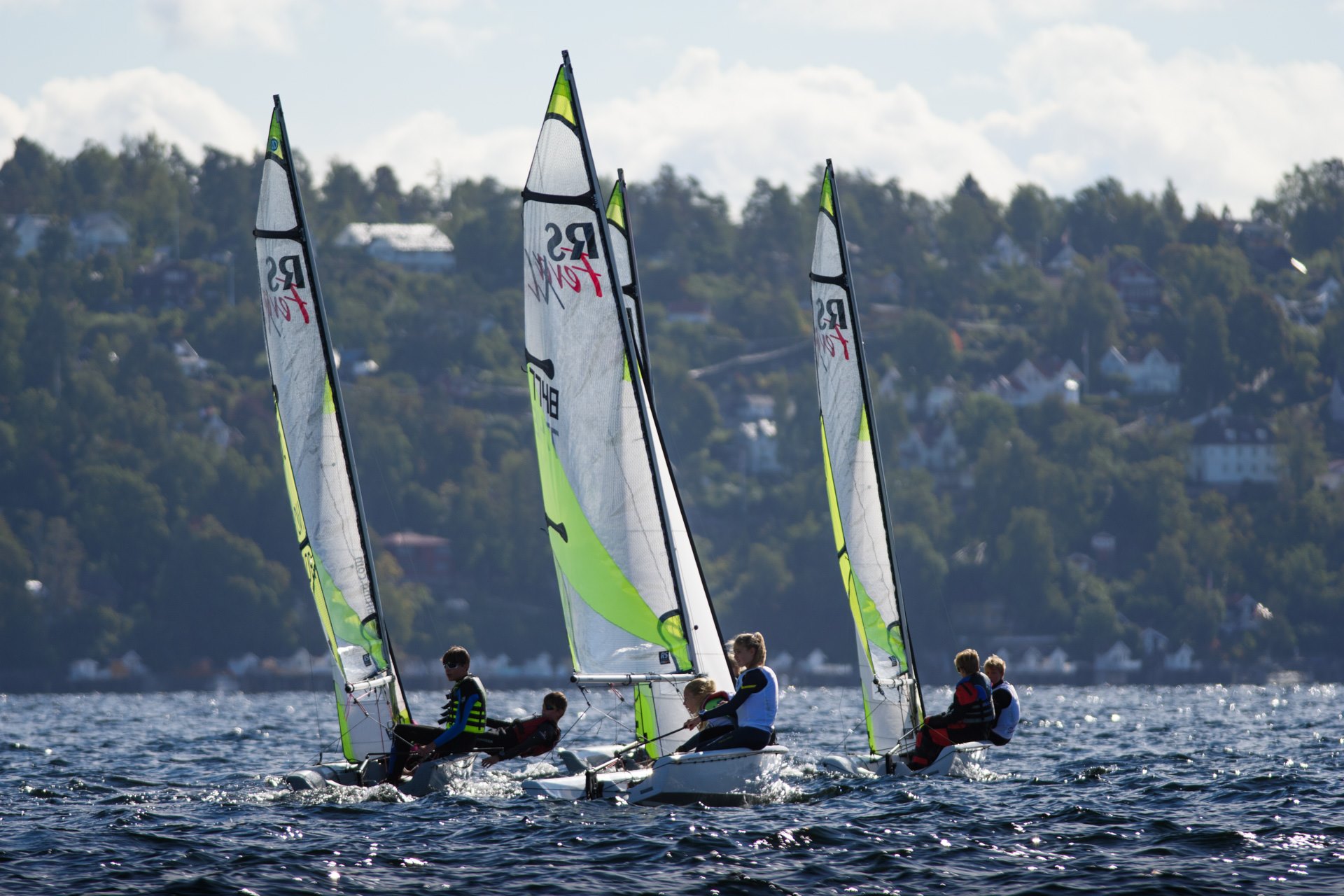 RS Feva er en spennende tomannsjolle med genakker, fokk og storseil. Jollen passer godt for deltakere som er ute etter litt mer fart og spenning, eller som vil utvide seilerfaringen sin. Her seiler vi 2 til 3 i båten om gangen, noe som gjør seilingen ekstra sosialt!